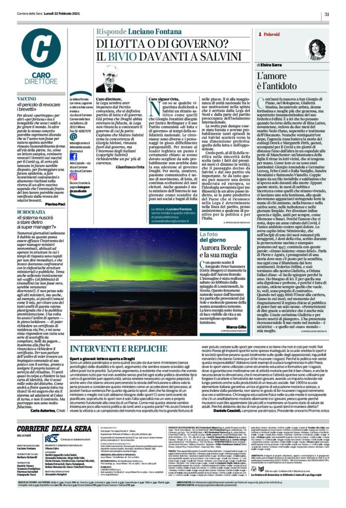 Lettera aperta al Prof. Draghi sulle tematiche che mi stanno tanto a cuore: lo sport e i giovani.